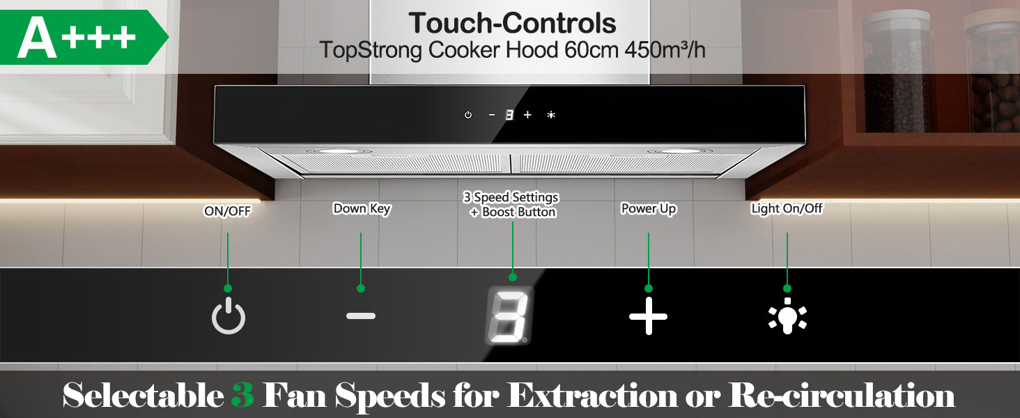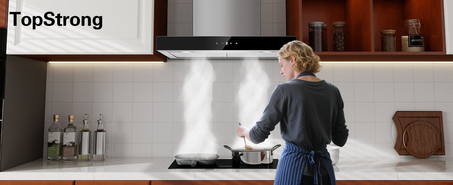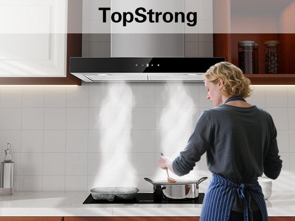 TopStrong range hood is fitted with an exhaust pipe to extract air through the top ventilation outlet, effectively keeping your kitchen and cooking area free from smoke and odours.