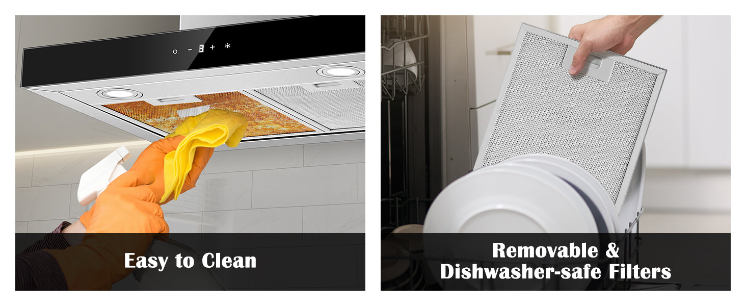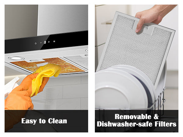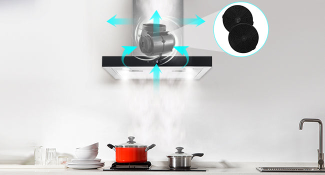 This 60cm range hood can also be converted to recirculation mode (ductless) using a carbon filter. After purification, the clean air is released back into your kitchen. (We recommend replacing the filter every 3–4 months.)