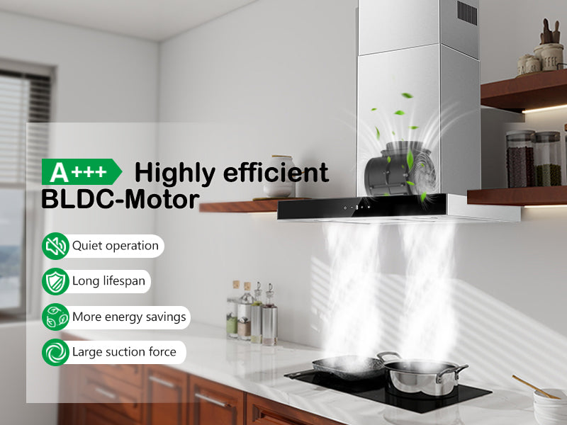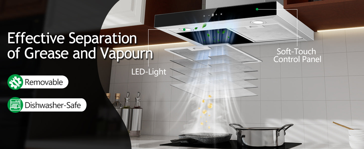 Combines powerful suction with low energy consumption, effectively eliminating smoke and cooking odors.
