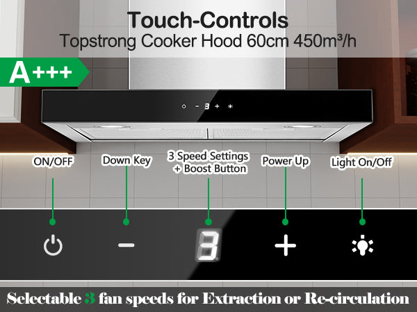 UKTTAB6- Cooker Hood 450m³/h 60 cm Kitchen Extractor Fan Energy Class A+++